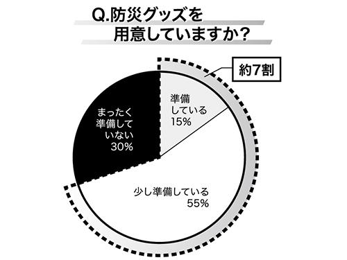 アンケート調査では、防災グッズを「準備している」「少し準備している」という回答が、合計で全体の7割を占めた。19年までは、「準備している」の割合が6割にとどまっていたことから、年々防災意識が高まっていることが分かったという。