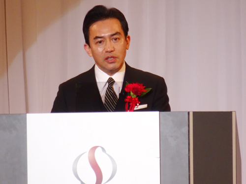 グループ新年会では、宇崎竜童氏、阿木燿子氏プロデュースによる「第2社歌」を披露したほか、22年度の認定マネージャーの紹介、シニアマネージャー表彰、永年勤続表彰が行われた。