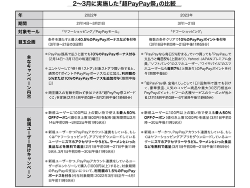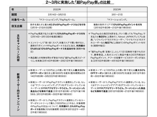 3月の「超PayPay祭」では、「PayPay」支払いで毎日5%たまる企画や、ソフトバンクユーザーならさらに2%付与するキャンペーンなどを展開していた。しかし、1年前の「超PayPay祭」のポイント最大付与率が40.5%だったのに対し、今回は22.5%にとどまっていたという。