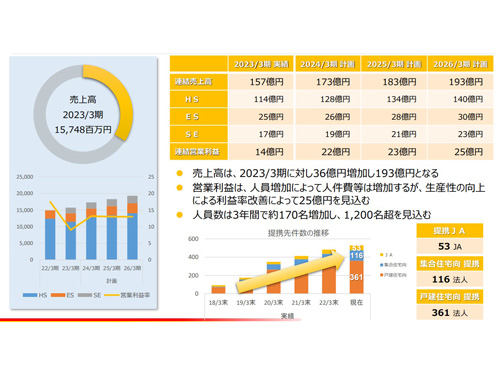 特に、業務提携先となる法人営業の体制を強化する。これまでの個別訪問の営業スタイル強化に加えて、法人営業を拡充することで、営業の間口を広げて、多様なニーズへの対応を図るとした。