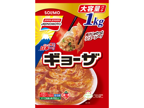 また、味の素のギョーザを食べたことがない人に向けて市販品の大容量パックも用意した。どちらもトレイレスで、冷凍庫の中でかさばらないよう工夫している。