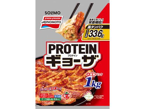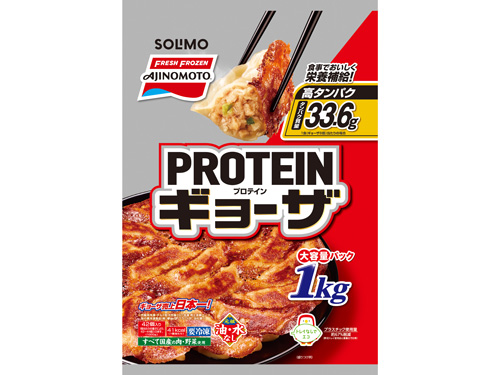 「SOLIMO PROTEIN ギョーザ 」は、1個当たり約4.2グラムのタンパク質が取れる冷凍タイプ。具の肉には鶏肉を使用。味の素グループの技術で、高タンパクでありながら、肉汁によるジューシーなおいしさを実現したという。