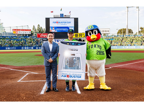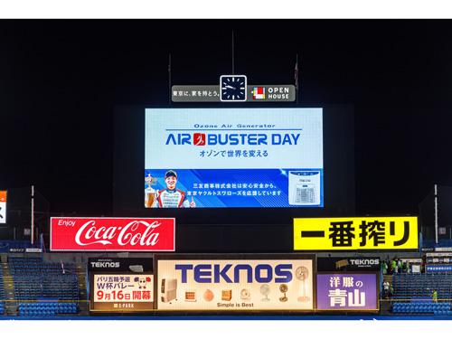 健康関連商材の開発・販売をする三友商事(本社大阪府、大門正義社長)は7月16日、東京・神宮球場で行われたプロ野球の巨人戦に協賛し、「AIR BUSTER DAY(エアバスターデイ)~エアバスターってなんだ!~」として開催した。オゾン除菌脱臭器「AIR BUSTER(エアバスター)」や、車載用オゾン除菌脱臭器「エアバスターポータブル」をPRした。