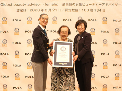 ポーラは8月21日、福島で活動する、100歳の販売員(ビューティーディレクター、BD)の堀野智子さんが、ギネスワールドレコーズが認定するギネス世界記録において、「最高齢女性ビューティーアドバイザー」として認定されたと発表した。同日には、福島市にある結婚式場で認定式が行われた。