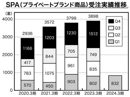 SPA商品(PB商品)の受注実績は、同3.7%増だった。
