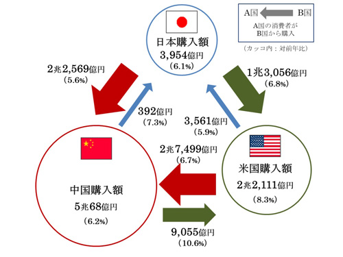 日本から米国への越境EC市場規模は、同6.8%増の1兆3056億円になった。中国への越境EC市場規模は、同5.6%増の2兆2569億円だった。円安などの影響で、海外の消費者の購入意欲が増加しているようだ。
