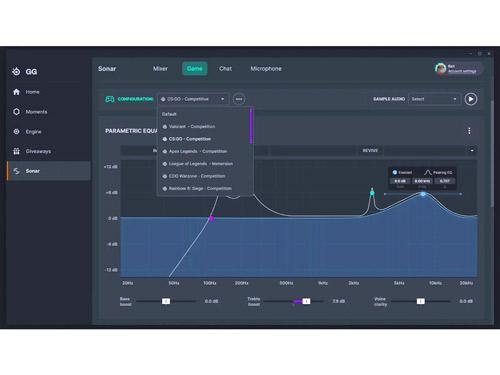 「ソナーはゲーム内の足音や銃声といった特定の音を増幅、低減して、重要な音を聴きやすくする機能だ。ゲームとボイスチャットにそれぞれ独立したイコライザーも設定できる」(同)と話す。