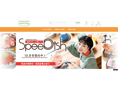 食品宅配のショクブンは、20~30代の顧客開拓に本腰を入れている。10月からアプリ専用の新ブランド「Meafill(ミーフィル)」の運用を開始したほか、週末に便利な時短ミールキット「SpeeDish(スピーディッシュ)」の販売を開始した。