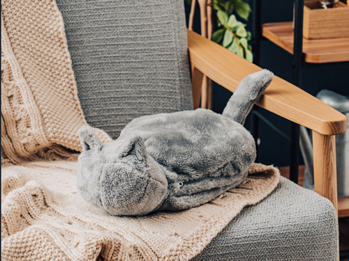 体に当てて使用する際は、約3時間、布団に入れて使用する際は約7時間温かさが持続する。猫の腹部がポケットのようになっているため、手足を温めることができる。