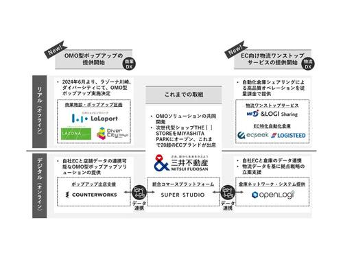 三井不動産は4月19日、統合コマースプラットフォーム「ecforce(イーシーフォース)」を提供するSUPER STUDIO(スーパースタジオ、本社東京都、林紘祐CEO)とともに、ECブランドの成長を”商業”と”物流”の両面から支援するプラットフォームの提供を開始した。OMO(リアルとデジタルの融合)の支援体制を構築し、ECブランドが提供する顧客体験を高め、柔軟に利用しやすい物流サービスも用意することで、成長を支援する。