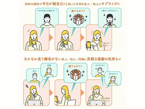 auコマース&ライフ(本社東京都、桑田祐二社長)は5月7日、ECモール「au PAY マーケット」において、住所や本名を知らない相手にもギフトが贈れるサービス「誰でもギフト」の提供を開始した。手軽に安心してギフトが贈れる環境を整備し、ギフト商品の販売促進につなげる。