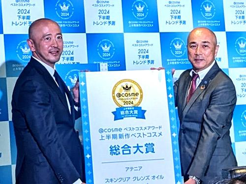 化粧品・美容の総合サイト「@cosme(アットコスメ)」を展開するアイスタイルは6月6日、「@cosmeベストコスメアワード2024 上半期新作ベストコスメ」を発表した。今回、総合大賞に選ばれた商品は、アテニア(本社神奈川県)のクレンジングオイル「スキンクリア クレンズ オイル アロマタイプ」となった。受賞した総合10位中、9商品が国産ブランドだった。