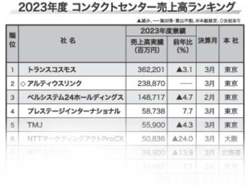 【コンタクトセンター売上高調査】 実質成長率は2.9%減/37社の合計売上高は1兆3001億(2024年10月31日号)