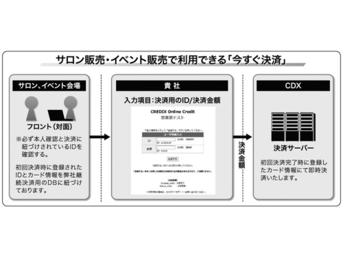 ネットワークビジネス(NB)主宰企業にクレジットカード決済サービスを提供するCREDIX(クレディックス、本社東京都、小林拓矢社長)は、NBの会員や企業が運営するサロンやコンベンション、ラリーの会場で商品を小売りする際に、会員ID番号を入力するだけで決済ができる「今すぐ決済」の提案に力を注いでいる。