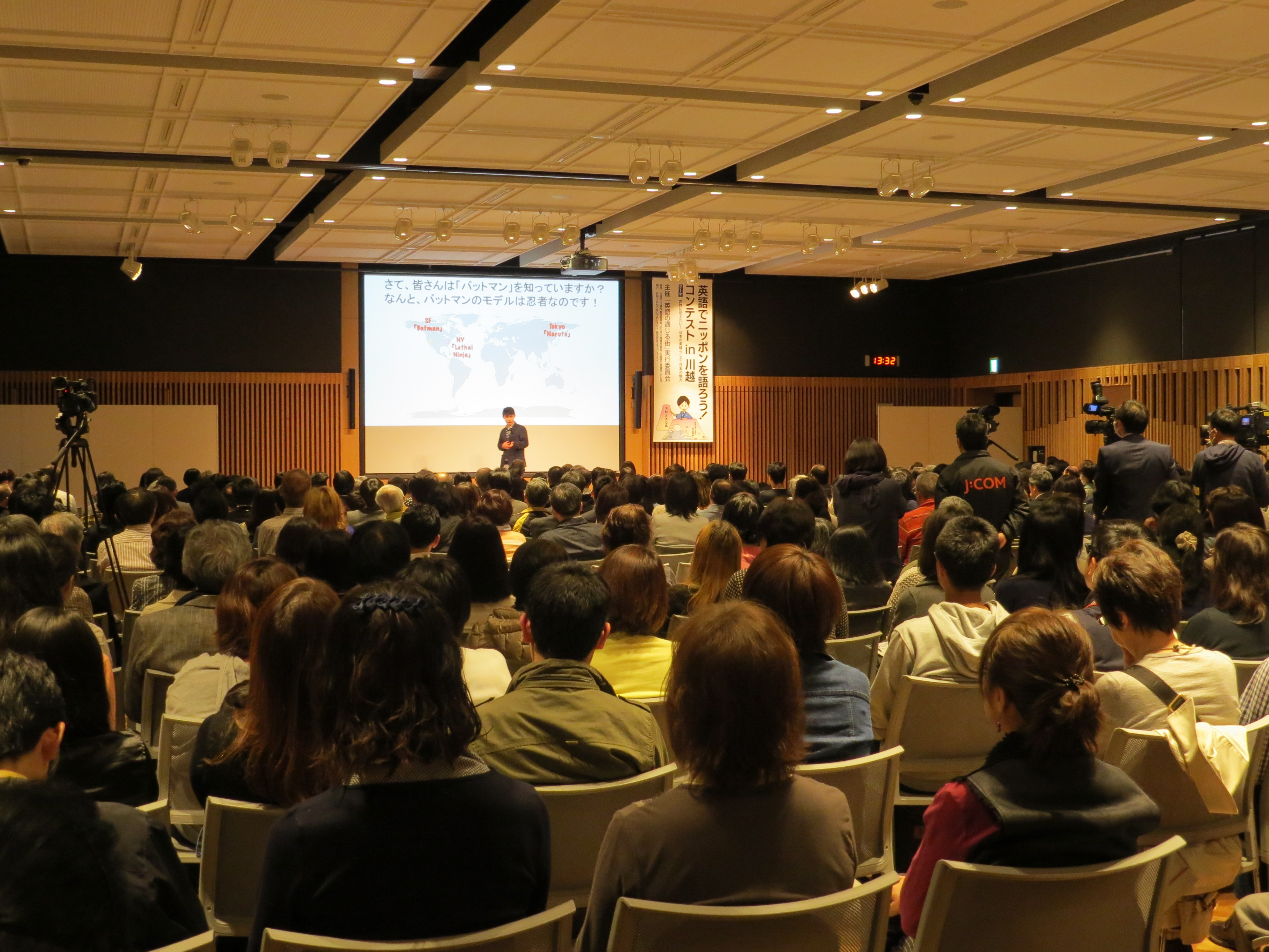 これまで、川越の商店の接客や観光案内に特化した英語教材「スピードラーニング」の開発や、川越一番街商店街で働く人を集めて英会話のワークショップなどを行ってきた。川越市が国際観光都市となることを目指し、13年に地域企業、観光協会、行政とともに「英語の通じる街実行委員会」を設立。4月16日に初めて「英語でニッポンを語ろう!コンテスト in 川越」と銘打ったスピーチコンテストを開催し、300人以上が来場した。