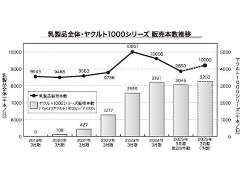 25年3月期は「ヤクルト1000」の販売目標数を1日あたり215万本に設定した。来年1月からの糖質オフ商品の本格販売で、糖質やカロリー、甘さを気にする消費者のニーズを取り込んで目標達成を目指す。