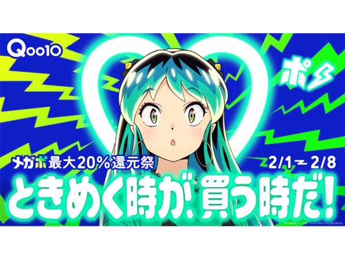 eBay Japan(イーベイ・ジャパン、本社東京都、グ・ジャヒョン代表)は2月1~8日、ECモール「Qoo10」おいて、クーポンとポイント還元で約20%お得になる「20%メガポ(メガポ)」セールを実施する。1月27日からは、電車広告やウェブサイトにおいて、TVアニメ「うる星やつら」の”ラムちゃん”とコラボした新CMの展開を開始した。