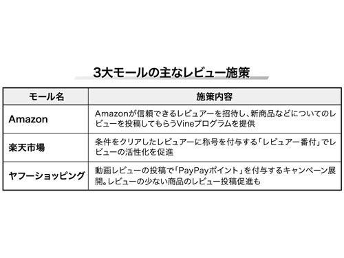 国内ECモールにおいて、レビュー施策が活発化している。LINEヤフーが運営する「ヤフーショッピング」では、購入者が動画レビューを投稿すると「PayPayポイント」を付与するキャンペーンを実施している。ECモールにおいても「レビュー」は購入の後押しとなり、購入率(CVR)向上に寄与している。国内3大ECモールである「ヤフーショッピング」「Amazon」「楽天市場」のレビュー施策の概要と成果に迫る。