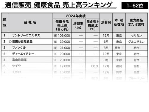 【2025年版 通販健康食品売上高ランキング】118社合計売上高は1134億9600万円/実質成長率は1.1%のマイナスに(2025年3月27日号)