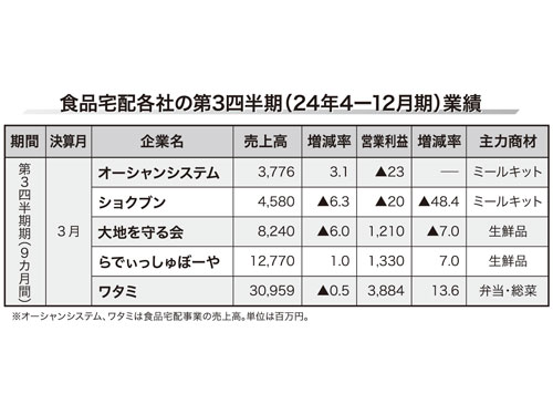 【決算まとめ 「食品宅配」編】食品宅配各社の第3四半期決算/5社決算で明暗(2025年4月10日号)