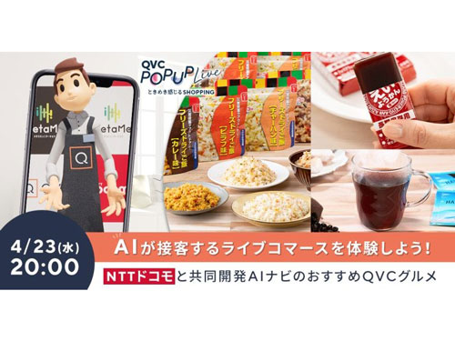 テレビを中心としたマルチプラットフォーム事業を展開するQVCジャパン(本社千葉県、伊藤淳史CEO)は4月23日、NTTドコモと協働し、AI(人工知能)ショッピングナビゲーターによるライブコマースを実施する。AIが出演する話題性を生かし、視聴者数の獲得、視聴者との関係性強化を図りたい考えだ。
