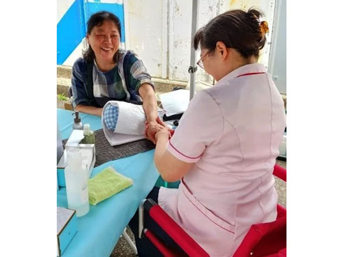 ナリス化粧品は、11年の東日本大震災以降、被災者支援のボランティア活動「心人(こころびと)」を継続している。この活動は、ハンドマッサージやメーキャップのサービスを通じて、被災者の心に寄り添うことを目的としているとされる。