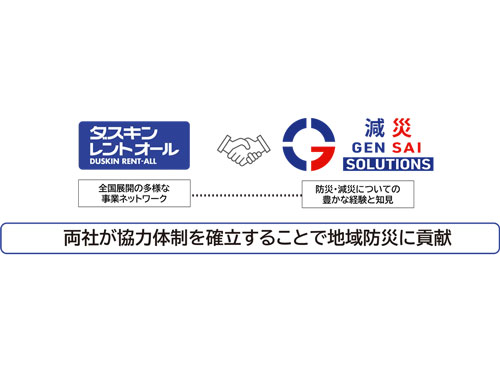 ダスキンは6月27日、レントオール事業において、減災ソリューションズ(本社東京都、加古嘉信社長)と知見やネットワークを相互に協力・活用する「防災・減災への取り組みにおける相互協力協定」を締結した。