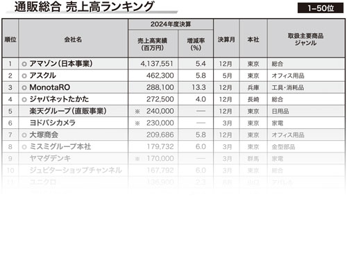 【通販・通教・EC 2024年度 売上高ランキングトップ560】 実質成長率は5.0%増に/合計売上高は13兆72億5000万円(2025年8月7日・14日合併号)