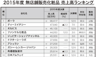 【無店舗販売化粧品15年度売上高調査】上位50社合計7975億円