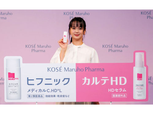 コーセーマルホファーマ(本社東京都、本田英二社長)は9月25日、「コーセー マルホ ファーマ『ヒフニック』『カルテHD』新CM発表会」を開催した。発表会では、本田社長が主催者あいさつを行い、新たに、CMでブランドを象徴するミューズに就任した、俳優の多部未華子が登壇した。(1)9月16日に新発売した一般用医薬品「ヒフニック」(2)今年で発売5周年を迎える「カルテHD」--の2ブランドのテレビCMを制作したという。新テレビCMには、多部未華子が登場する。