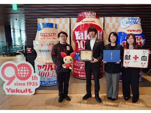 ヤクルト本社は、長年にわたる献血活動への継続的な取り組みが評価され、日本赤十字社から「金色有功章」を受章した。