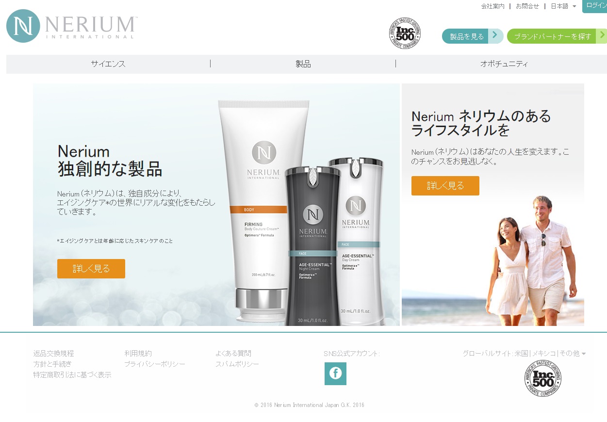 スキンケア化粧品をネットワークビジネス(NB)で販売する外資系企業ネリウムインターナショナル(本社米国テキサス州、ジェフ・オルソン創業者兼CEO)の日本法人であるネリウムインターナショナルジャパン(本社東京都、ピーター・デールGM)は7月19日、プレオープンに合わせて公式企業サイトとフェイスブックページを公開した。今後公式企業サイトには、ECサイトを用意し、ビジネス会員以外にも商品を販売できる仕組みを構築するという。