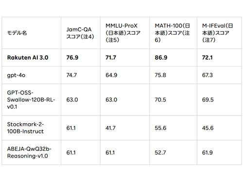 楽天グループ(楽天)は3月17日、日本の生成AIの開発力強化を目的とした「GENIACプロジェクト」の一環として開発した、国内最大規模の高性能AIモデル「Rakuten AI 3.0」の提供を開始した。国内のAIアプリケーションを開発する企業や技術者を支援する。