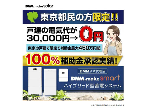 太陽光発電や蓄電池、V2Hなど販売や施工を行うえねこ(本社東京都、沢田陽由馬社長)は4月11日、DMM.com(本社東京都)が展開する太陽光発電や蓄電池事業の「DMMエナジー」とコラボレーション広告を開始した。DMMエナジーのブランド力を生かして認知や販売の拡大に取り組む。
