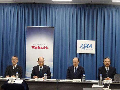 ヤクルト本社の取締役専務執行役員の石川文保氏は会見で、「地上では分からないような宇宙空間でのプロバイオティクスの作用について純粋に知りたいという思いで始める。機能性食品への応用も期待したい」と話した。