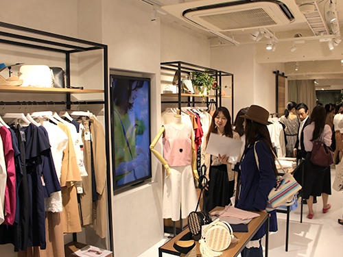 「FABIA(ファビア)表参道店」には、アパレル商品のほか、靴やバッグといった服飾雑貨など約180品目を取りそろえた。主な価格帯は5000~8000円で、店舗の立地環境などを考え商品を選定した。