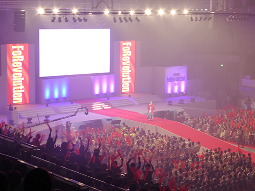 コンベンションには米国フォーエバーリビングプロダクツのグレッグ・マーン社長らが登壇した。「ダブル」というスローガンを掲げ、「皆さんが2倍のボーナスを得て夢を実現するために、今が変わるべき時だ。日本における売り上げを1000億円規模に成長させる」と意気込みを語った。