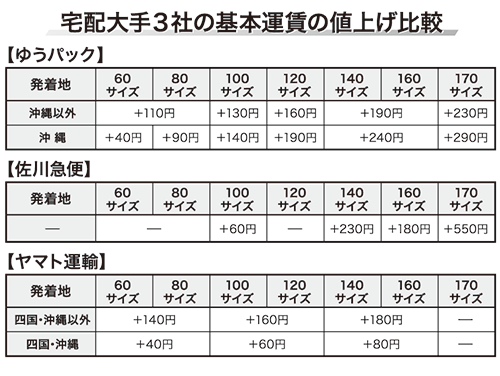 宅配大手3社の値上げが出そろったことになる=詳細は別表。