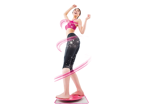 お椀構造の商品の上に立ち、体をねじる。足を乗せるパット部分が内側に傾斜しており、骨盤まわりを引き締める。