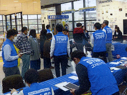 2月1日から、タナカ燃料の営業マンが顧客宅を個別訪問して商談会に案内し、来場促進を実施。案内を持参して来店した客をタナカ燃料の社員が接客。専門知識が必要な場合は、ヤマダ電機の販売員が説明した。