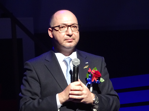 また、今年のテーマを『Discovery〜新しい世界へ〜』にした理由について、「15世紀の帆船『ニーナ号』は、困難を乗り越え新大陸に向けて航海してきた。この歴史を踏まえ、今年のテーマにふさわしいと考えた。何事も最初に始めることは難しいが、人が前進するために必要なのは好奇心だ。常識にとらわれず困難を乗り越えていくことで新しい世界を作り上げよう」と呼びかけた。