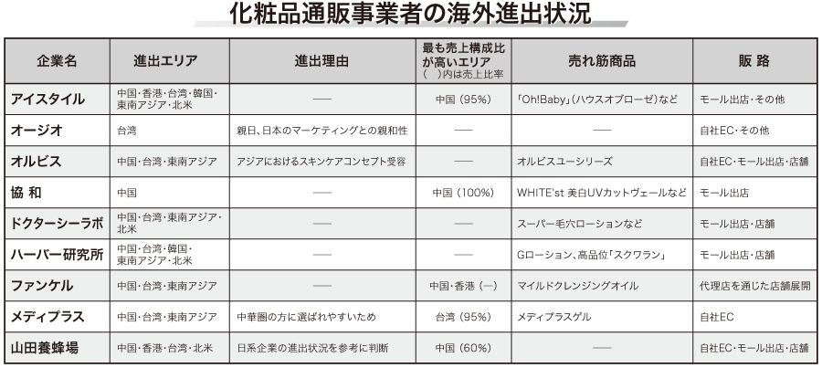 日本の化粧品通販企業が、中国向け通販事業でノウハウの蓄積を進めている。中でもECモールに出店しながら試行錯誤を続ける化粧品通販事業者が目立つ。アイスタイルは自社の強みである口コミを武器に認知を向上、取引先との関係を生かした売れ筋商品の調達力で差別化を図っている。協和は昨秋、中国のインフルエンサーであるKOL(キー・オピニオン・リーダー)を起用したライブコマースを展開。ドクターシーラボもKOLを対象としたイベントを実施して認知を広げている。