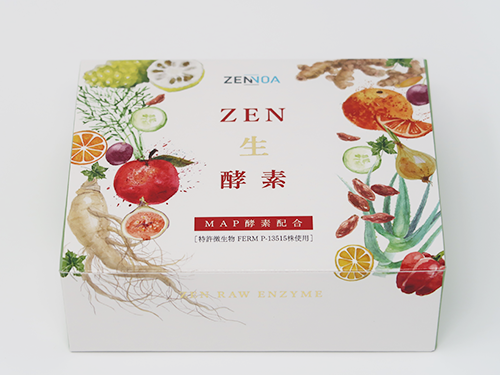 5月1日に発売した、新たな「ZEN生酵素」は、日本山人参、紅参をはじめ、厳選された83種類の野草に、ノニを加え、特注のカメで発酵・熟成した濃縮・練タイプの健康食品。特許微生物FERM P—13515株使用。希望小売価格は、30包入りで1万4000円(税別)。