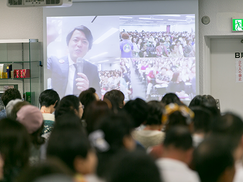 あいさつに立った和田社長は、一部業務停止命令を受けたことに対して、改めて会員に謝罪するとともに、「会員の皆さまの笑顔に支えられた6カ月だった」と謝辞を述べた。その上で、「大切な方に安心して加入していただくためにも、スポンサーライセンスを取得してほしい」と、コンプライアンスの重要性を強調した。