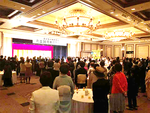 浄水器などの水関連商品のネットワークビジネスを展開するグリーンプラネット(GP、本部東京都、日高英光理事長)の商品供給元であるタイセイ(本社福岡県)は5月28日、タイセイの創立30周年を記念する祝賀会を開催した。会場の東京・日比谷の帝国ホテルには、GPの会員ら300人以上が参集した。