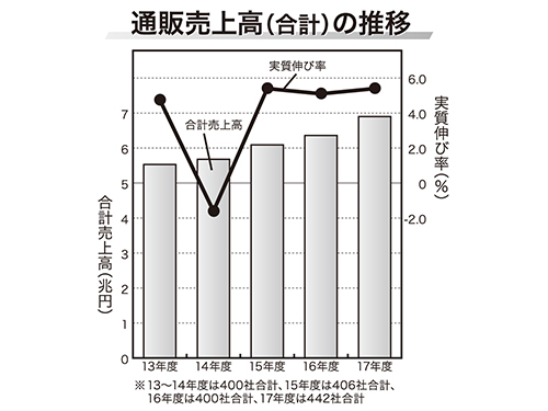 【通販・通教・EC 2017年度 売上高ランキング】 BtoB、衣料品、健食が増収/今後の成長には物流対策が必須