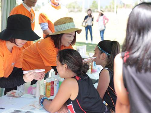 大会2日目には、同大会に出場する選手たちに対して、オッペン化粧品が、スキンケアのメイクアップ講習を実施。高校生女子が悩みとして抱える、日焼けやニキビケアを中心に講習を行った。