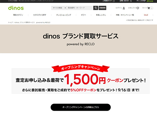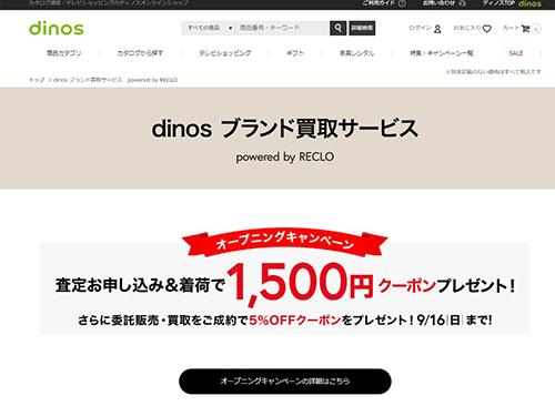 ECサイト「ディノスオンラインショップ」において、ブランド品の買い取りサービス「dinosブランド買取サービス powered by RECLO」の提供を開始した。買い取り商品を引き取りに出向くため、利用者は手間なく不要になったブランド品を販売できる。