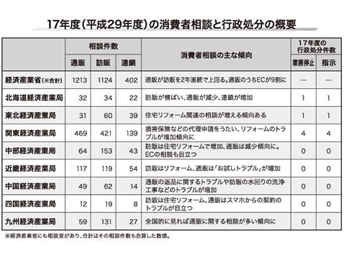 経済産業省の全国の出先機関である経済産業局がコンプライアンスを軸とした事業者啓発活動を本格化させている。中部経済産業局では、今年6〜7月に、日本政策金融公庫や楽天、ヤフーなどと合同で、EC(ネット通販)向けのコンプライアンスセミナーを開催。東北経済産業局は、18年度から業界団体と共同で事業者啓発を本格化していく。四国経済産業局では、経済産業施策や特定テーマの説明を行う「出前サービス」を開催する。経済産業局は消費者庁の出先機関として、特商法の行政処分の執行権限も有しており、執行担当職員が不足しがちな各地方自治体の立ち入り調査(検査)や行政処分を合同で行うことで迅速な執行につなげる。産業振興の役割を担う経済産業局が業界の健全な発展に向けて重要な役割になるか期待される。