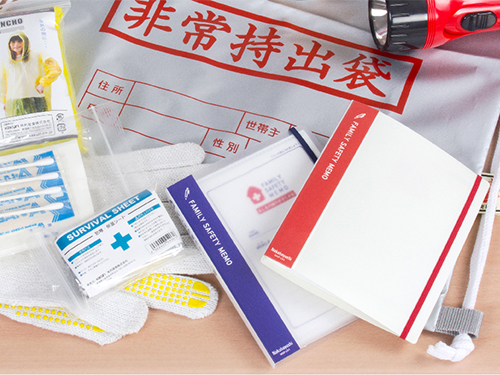 情報カードの付いたメモ帳は「もしもの時の家族メモ」。L判サイズの写真を保存できるポケットファイルが付いている。家族の写真を保存することで、災害時に家族を探すのにも役立つ。